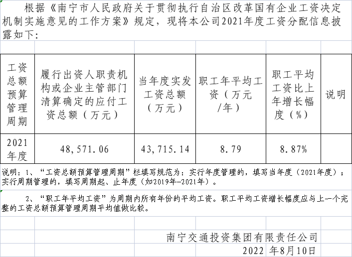 2021年度南寧市國(guó)有企業(yè)工資分配信息披露表