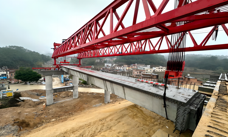 南賓公路項(xiàng)目高田大橋首榀箱梁順利架設(shè)完成